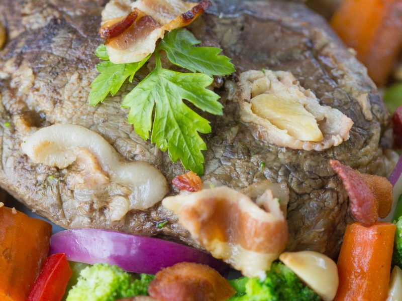 Okay so I knew the chances of a super quick response were very slim so I guessed :) I cooked my bacon about halfway thru along with my garlic whole and that alone was super yum to eat. This was by far, one of the best roasts I’ve ever made. Very, very good and bummed that I don’t have enough to make JBs burger special (paleomg) with leftovers.