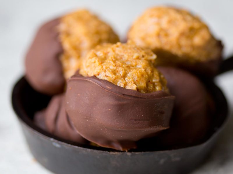 I went ahead and added some unsweetened coconut flakes to the almond butter. This worked as a flavor enhancement, plus it made the almond butter easier to mold! Simply finished off the combination with some melted chocolate and we had a miracle occur in the kitchen!