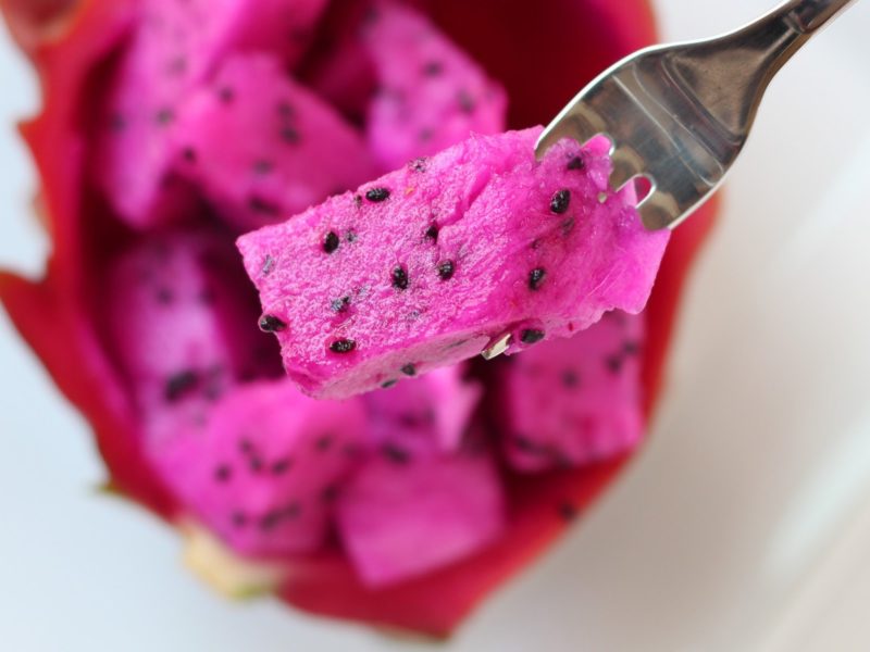 OOOh yum! The Dragon fruit we usually get In Oz has white flesh, Ill have to keep an eye out for this.