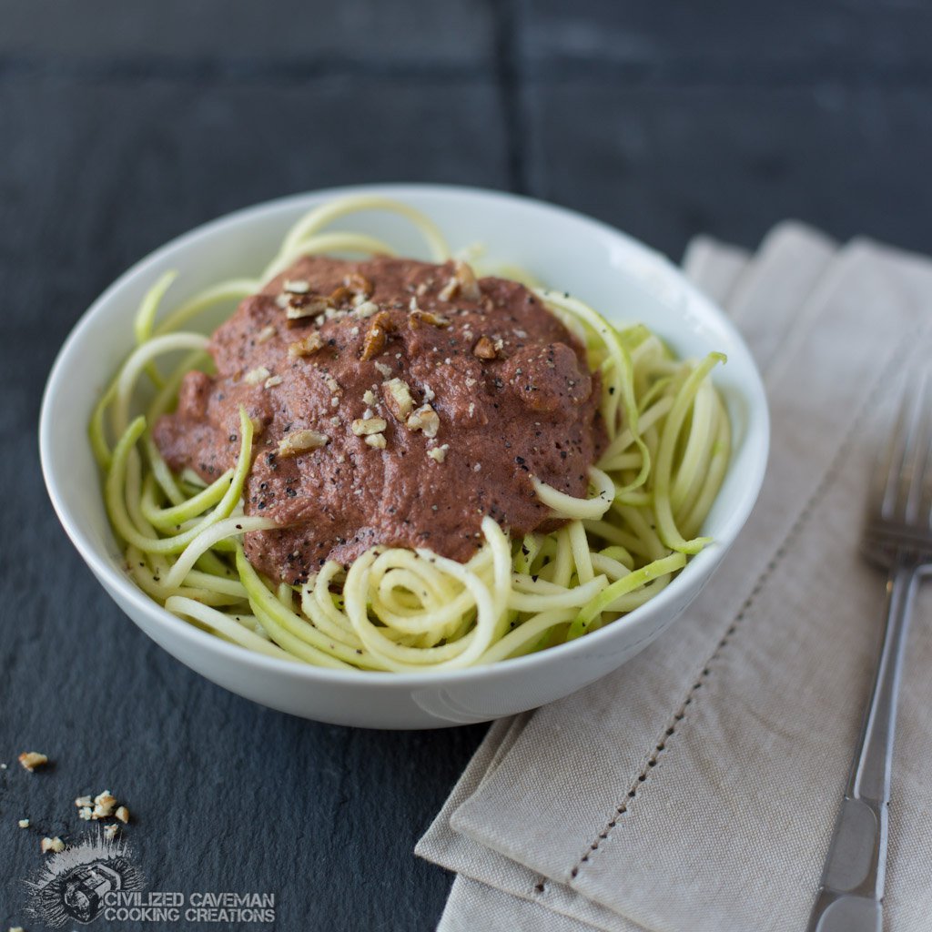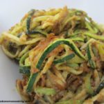 A spiralizer was one of the many paleo living gifts I gave myself for Christmas… and I’m not sorry!! I’ve been doing “zoosketti” about once a week since I got it… I love it!! I love it with a jazzed-up chunky marinara… I toss in crushed garlic, onion, beautiful chunks of green bell pepper… loads of fresh oregano and some fresh basil. I found that I really like it with chunked chicken in it (from the gazillion chickens I roast monthly). It’s a quick and easy meal, with a big salad on the side… what’s not to love?