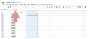 The next column in this spreadsheet will calculate how many calories are burned depending on the steps taken.
