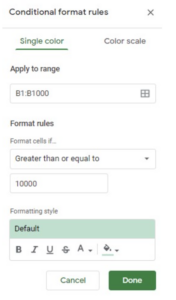 - Navigate to Format > Conditional formatting