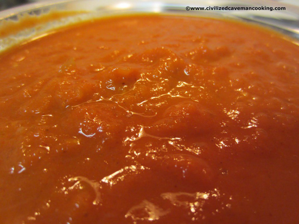 Once your sauce has simmered, turn off the heat and pour your sauce into a blender or food processor and run until you get a nice smooth sauce consistency
