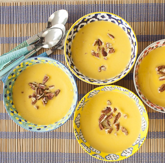 Serve soup topped with spiced pecans.