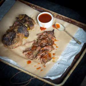 Plate your bison or beef roast and dress it using the BBQ Sauce of your choice (like my