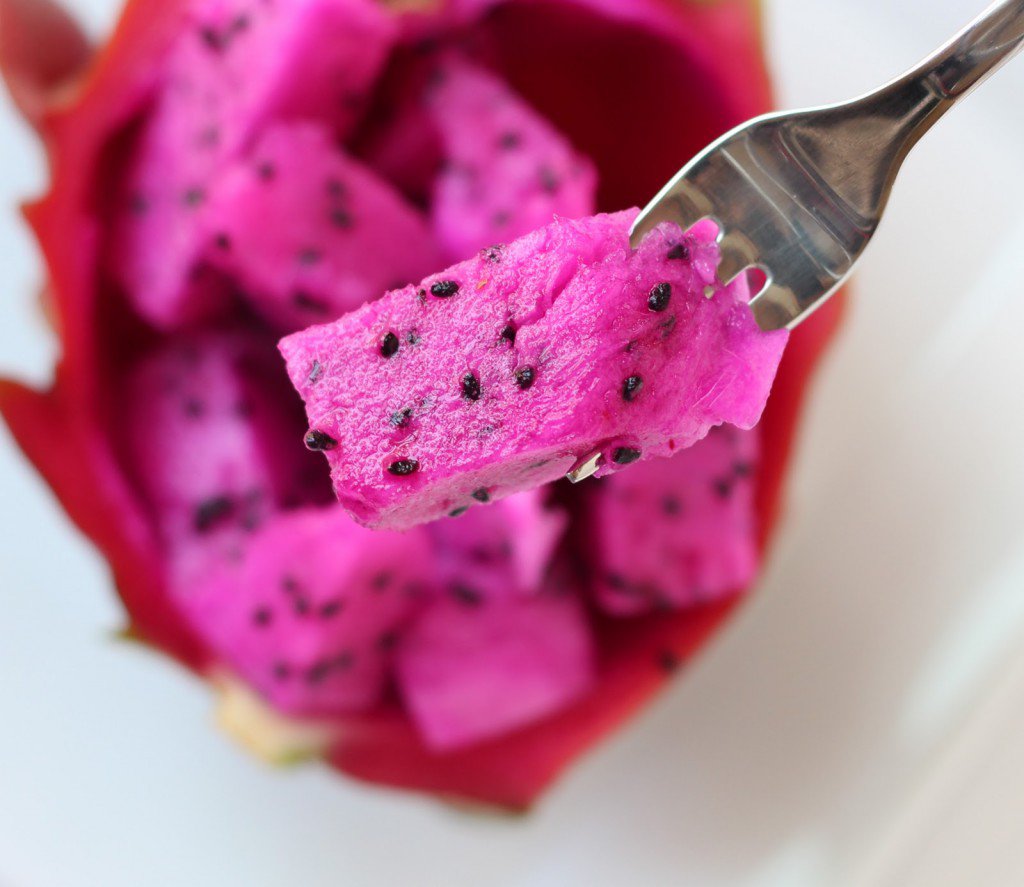 Cut your dragon fruit in half, use a spoon and remove all the fruit