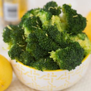Season your broccoli with the lemon pepper seasoning, salt and pepper to your taste liking
