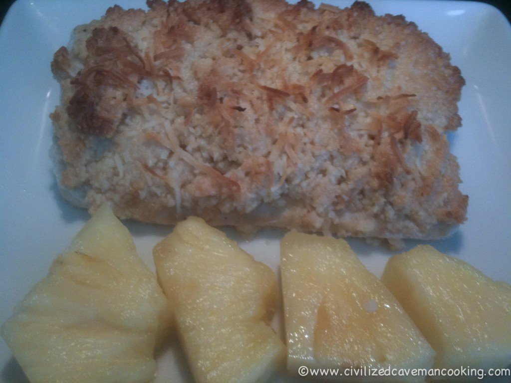 Flip the Mahi over and spread your macadamia mixture over the top of the fillets and press it down so it sticks. Then add your shredded coconut on top of the mixture, as much as you like