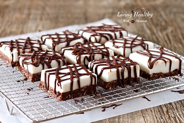 cut into squares and drizzle with melted dark chocolate or chocolate chips. I like using a ziploc bag to drizzle the chocolate. Cut a small hole on one end of the bag and fill it with the melted chocolate.