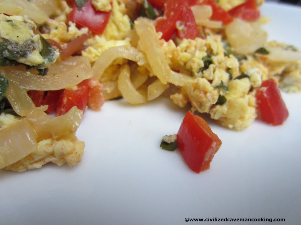 After you saute your tomatoes for about 3 minutes add in your eggs and continue to stir well to get your scramble until your eggs are cooked