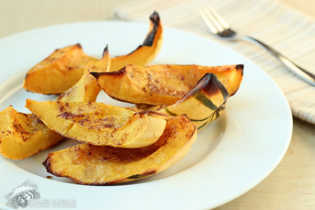Sprinkle all the squash with the amount of the above seasonings that you like. I personally go heavy with the cinnamon, and just a pinch of nutmeg and salt