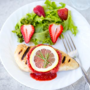 Once warm, grill your chicken breasts. Cooking times will vary depending on the size of the breast but it should be about 5 minutes per side. Remember to only flip once.