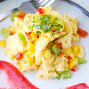 Heat your coconut oil in a pan on medium heat, cook your diced peppers until they are soft
